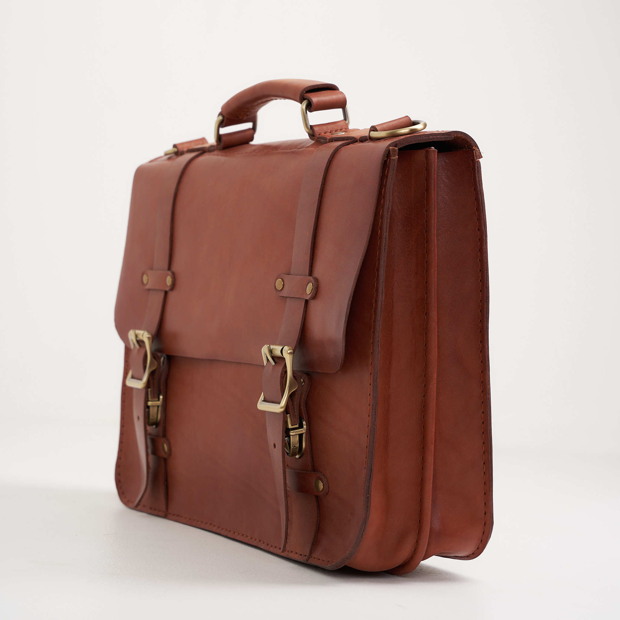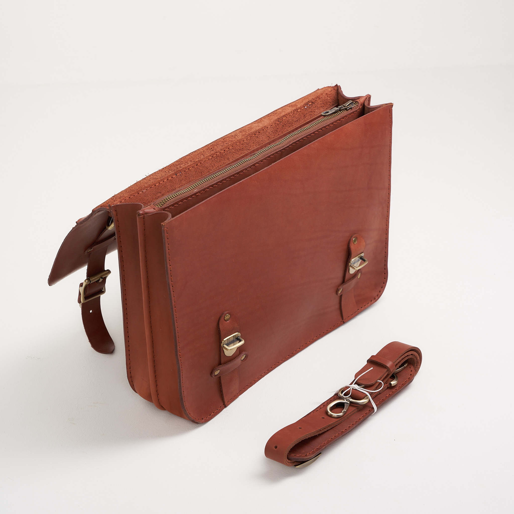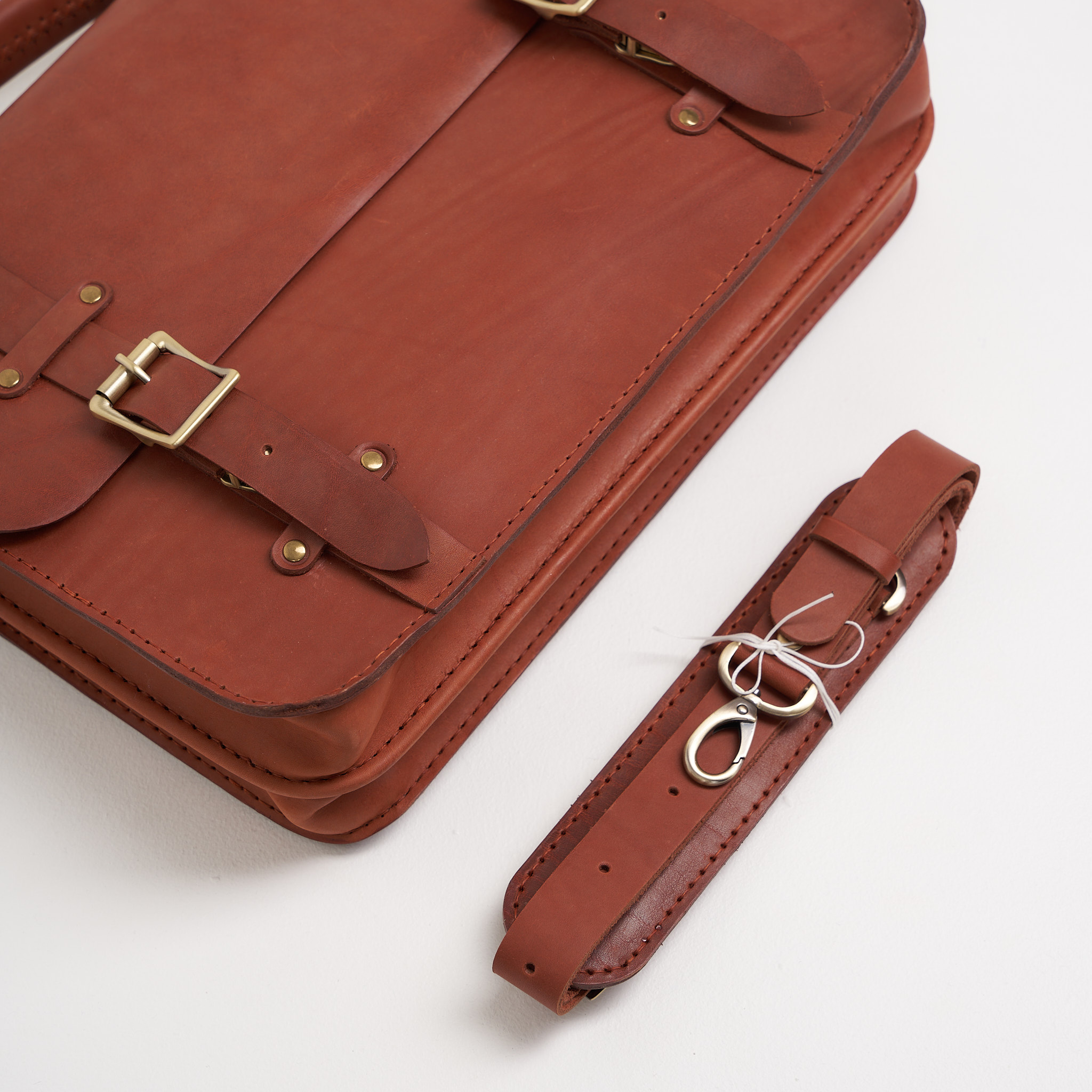 Портфель полностью прошит вручную, что значительно увеличивает прочность изделия