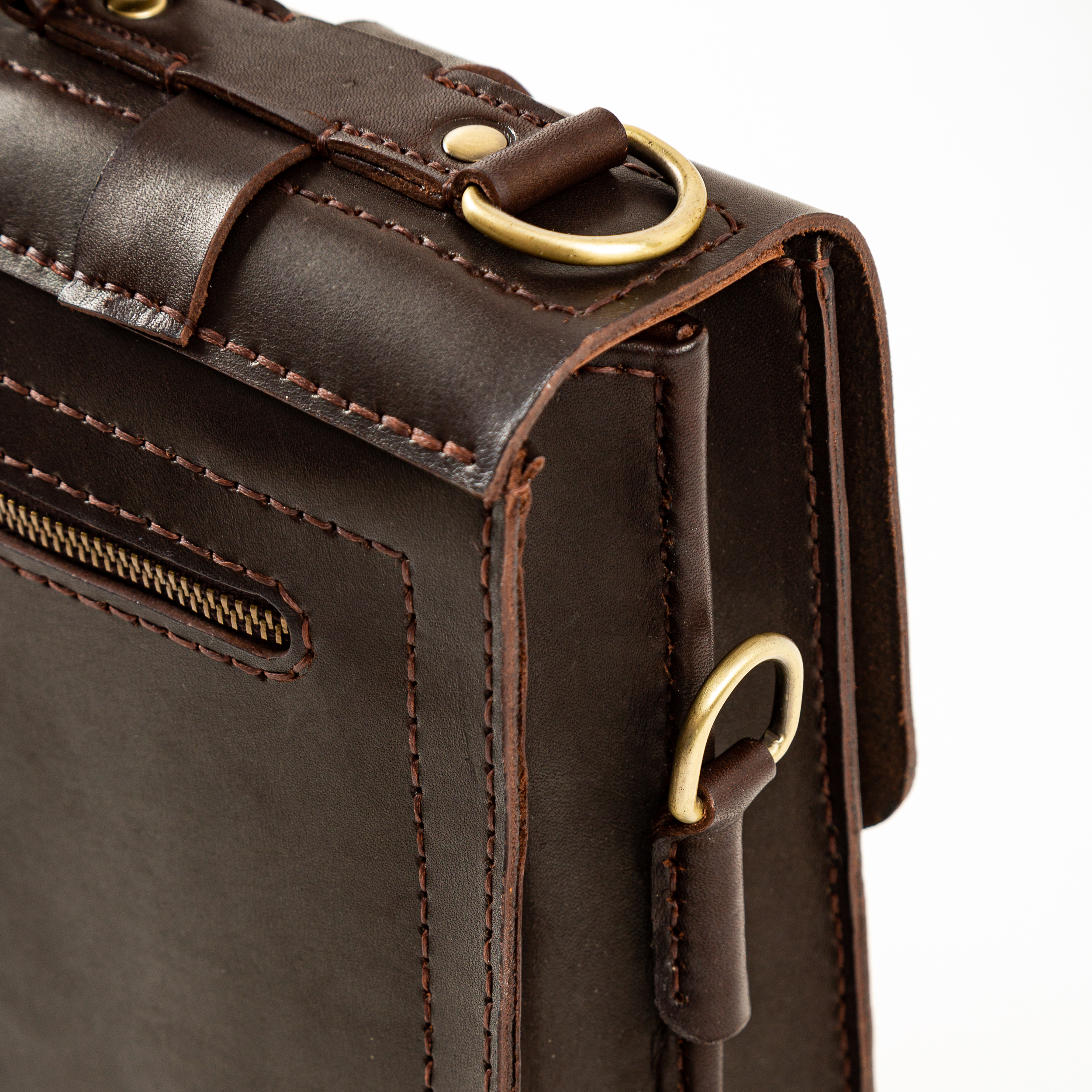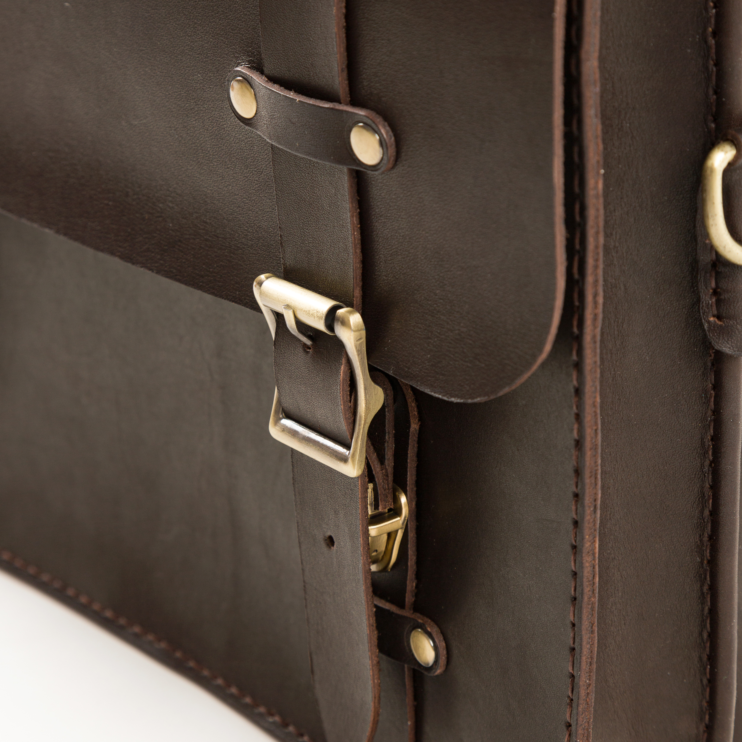 Портфель полностью прошит вручную, что значительно увеличивает прочность изделия
