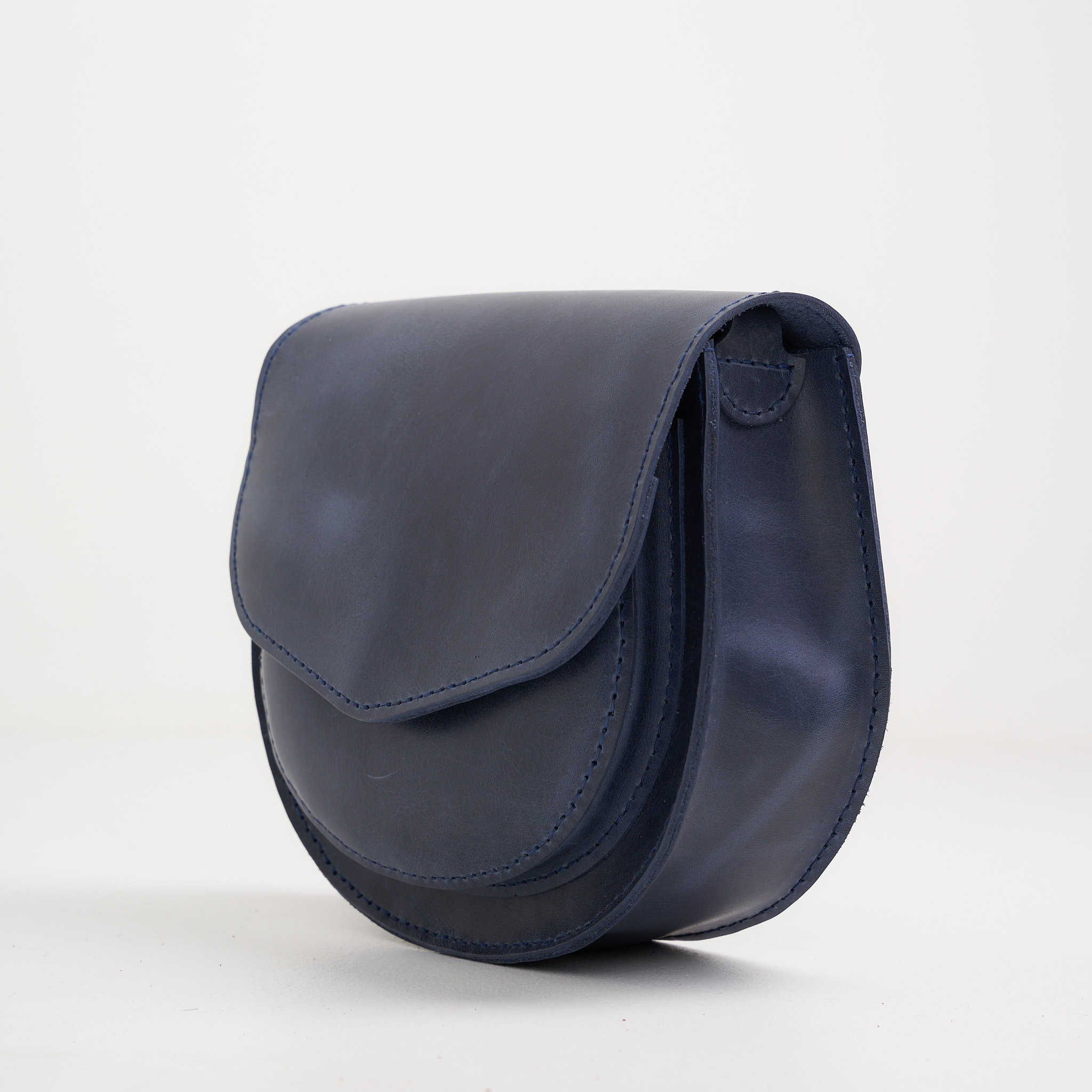 Оригинальная кожаная сумочка закруглённой формы – то, что нужно для современной утонченной леди.